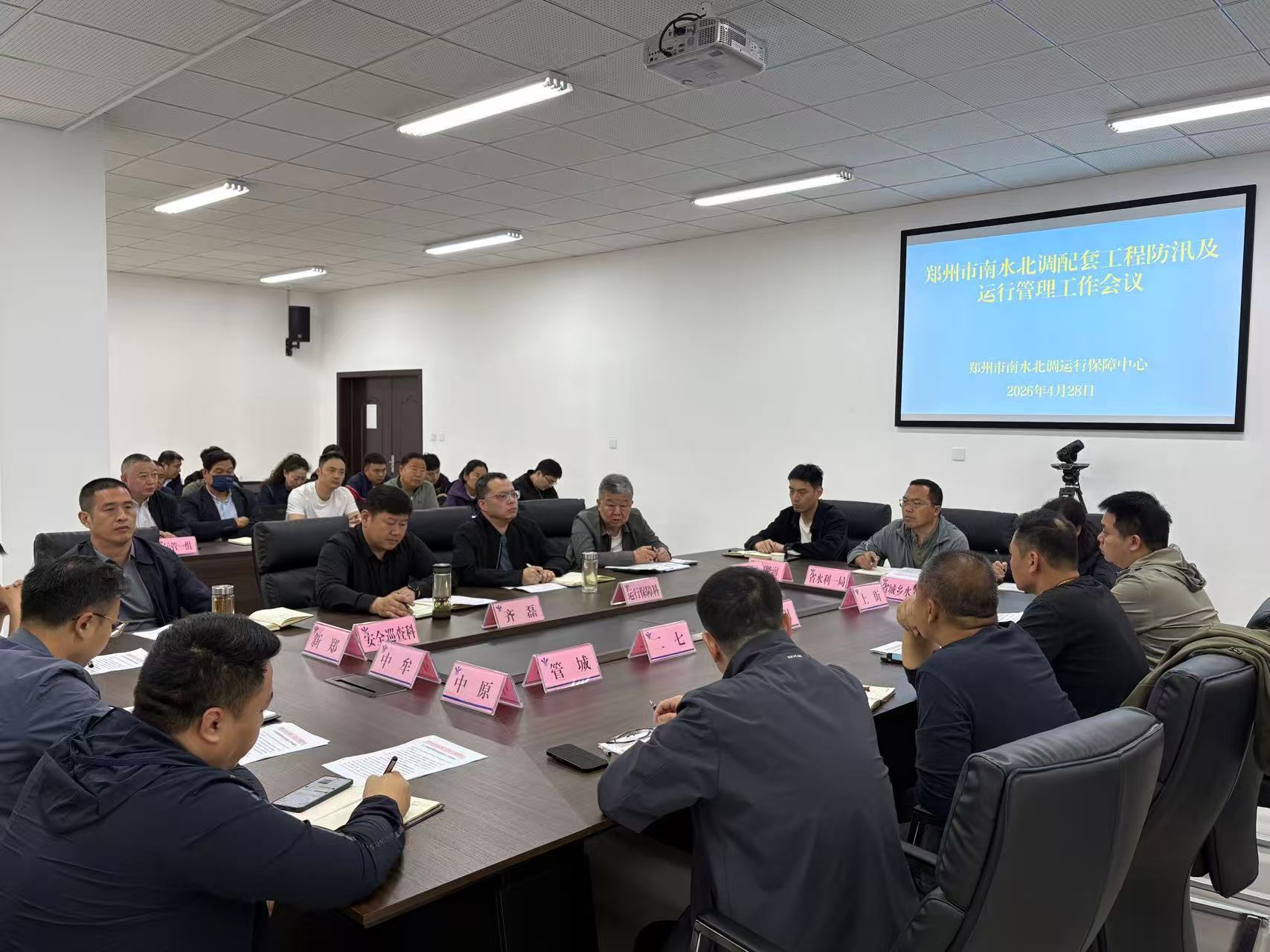 4月28日,市南水北调工程运行保障中心组织召开了郑州配套工程防汛及运行管理工作会议,齐磊副主任主持。会议印发了《关于做好2026年郑州南水北调配套工程防汛度汛工作的通知》、《关于印发《郑州南水北调配套工程代运行及维护工作监督考核及责任追究办法(试行)》的通知》以及《各区(县市)2026年度防汛物资资金分配清单》,会议通报了近期郑州配套工程执法巡查情况,对加强管线巡查维护和泵站代运行管理等方面工作做了强调和要求,结合今年配套工程防汛形势进行了工作安排。