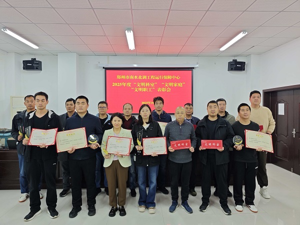 为深入学习宣传贯彻党的二十大和二十届二中、三中全会精神,全面落实习近平总书记系列重要讲话精神,激励中心干部职工自觉践行社会主义核心价值观和荣辱观,大力弘扬社会公德、职业道德、家庭美德和个人品德,推动精神文明建设向纵深发展,郑州市南水北调工程运行保障中心于10月17日举办文明科室、文明职工、文明家庭表彰活动,以榜样力量引领文明风尚,凝聚奋进合力。