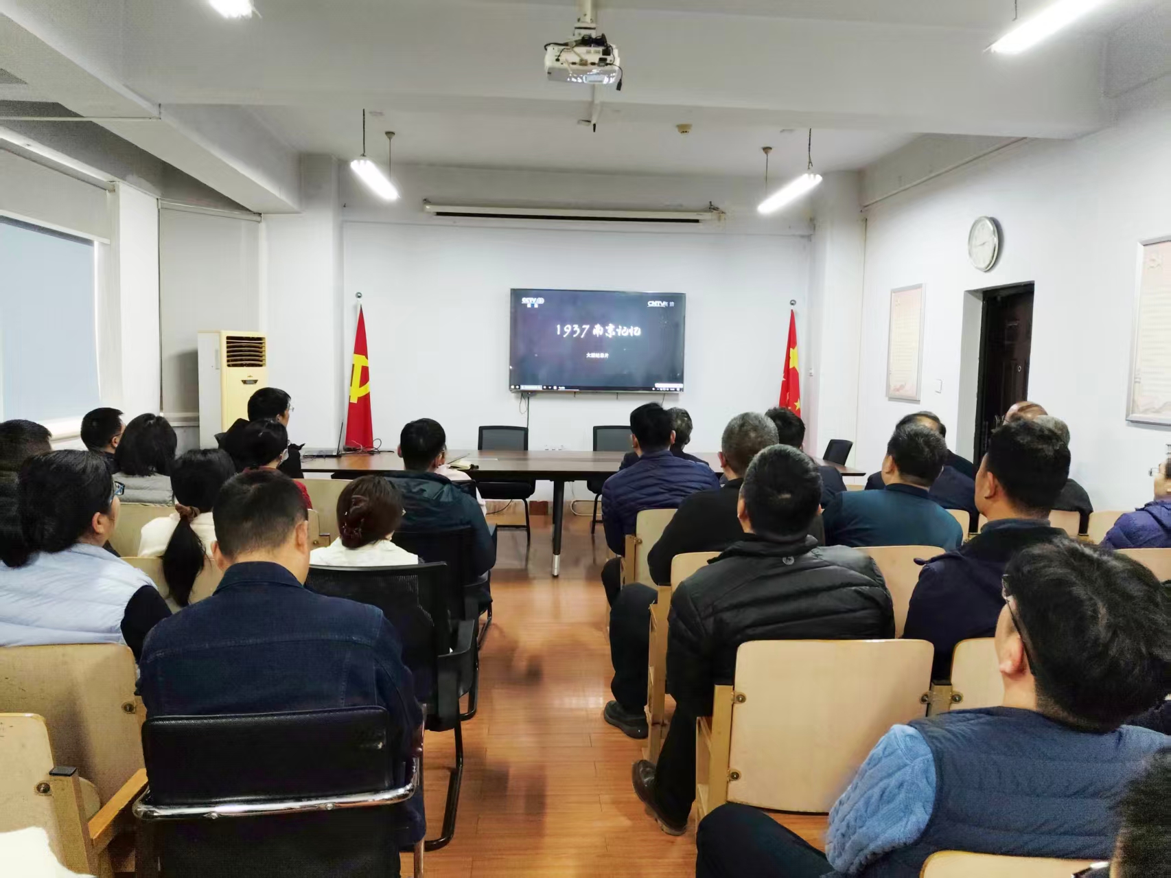 全体党员通过登录国家公祭网,以点烛、献花、敲钟、发表祭文等形式参与祭奠,缅怀先烈,寄托哀思;通过“侵华日军南京大屠杀遇难同胞纪念馆”官网线上观展,观看展出的照片、文物、影像资料,重温民族痛史,上了一堂特殊的“历史课”。活动最后,大家集中观看了纪录片《1937南京记忆》。