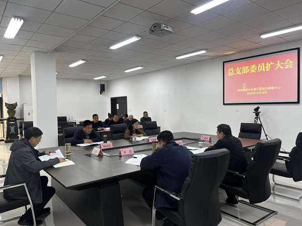 12月18日下午,郑州市南水北调工程运行保障中心党总支召开总支部委员扩大会议。会议由中心党总支书记、主任武拥军主持并讲话,中心领导班子成员和中层以上干部参加会议。