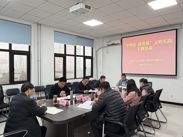 为落实2026年“河南省新时代文明实践推动周”活动相关要求,3月4日,郑州市南水北调工程运行保障中心组织开展“学理论 谋发展”文明实践主题活动。中心党总支带头学,各支部紧跟部署,深入学习贯彻习近平新时代中国特色社会主义思想,进一步统一思想、凝聚共识,为南水北调后续工程高质量发展注入强大精神动力。