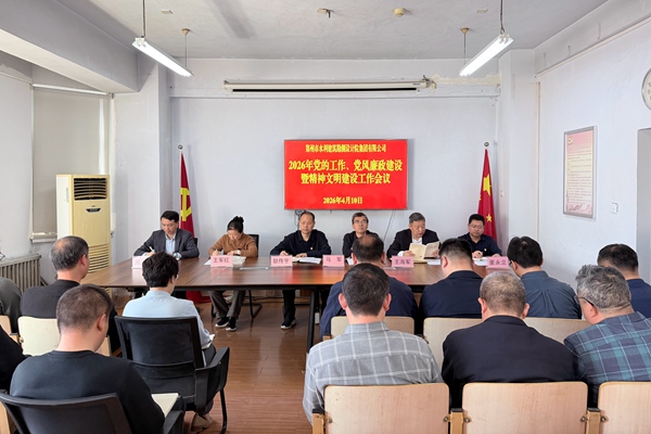 4月10日,市水利建筑勘测设计院集团有限公司召开2026年党的工作、党风廉政建设暨精神文明建设工作会议。公司党总支委员、副总经理王海军主持,班子成员及中层正职干部参加。