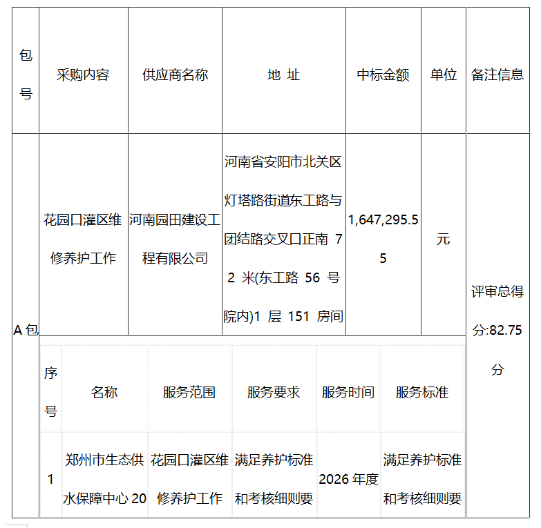 A包:花园口灌区维修养护工作,包括对总干渠、东大坝干渠、六堡干渠、姚桥干渠和祭城干渠等5条干渠的渠道、生产交通桥、涵闸、倒虹吸等水利工程以及花园口泵站、东大坝泵站、马渡引黄闸临时泵站工程进行维修养护。